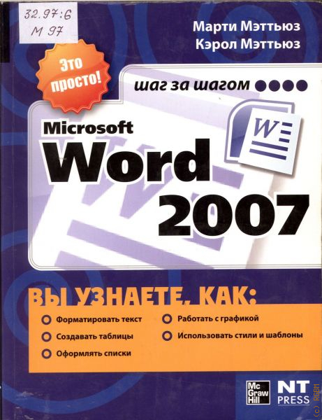 Эта книга научит Вас создавать текстовые документы любой сложности в популярнейшей программе Microsoft Word 2007. Наглядные иллюстрации и пошаговые инструкции помогут Вам быстро и легко освоить новый интерфейс Word, а также научат форматировать текст, создавать списки и таблицы, вставлять в документ графические элементы, оформлять документы с помощью библиотеки стандартных стилей и шаблонов и многое другое.