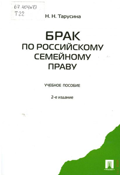 В учебном пособии рассматриваются вопросы истории брачного права, понятие брака, условия его заключения, недействительности и прекращения брака. Пособие предназначено для студентов, обучающихся по специальности 30 501 «Юриспруденция» (дисциплина «Семейное право», блок ОПД) очной и очно-заочной форм обучения, а также для УИРС и НИРС, подготовки курсовых, выпускных квалификационных работ и магистерских диссертаций.