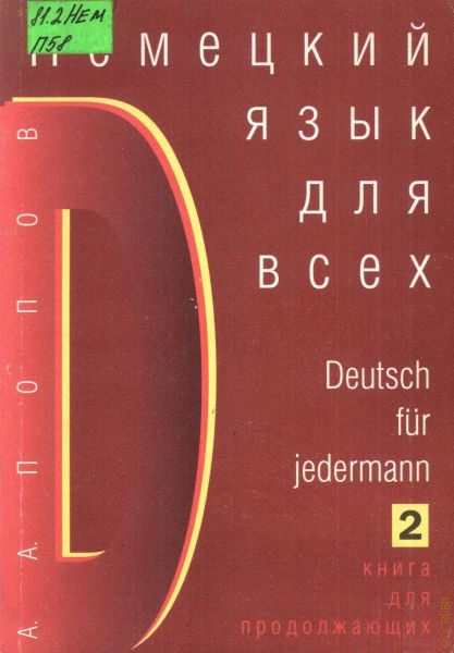 Данное пособие является продолжением книги А. А. Попова «Немецкий язык для всех. Книга для начинающих». Его цель — научить вести беседу (задавать вопросы и понимать собеседника) в пределах повседневного общения. Изменения, внесенные во 2-е издание, связаны, вDeutsch fur jedermann 2 основном, с объединением Германии.