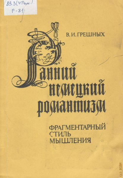 Грешных Владимир Иванович Ранний немецкий романтизм: фрагментарный стиль мышления