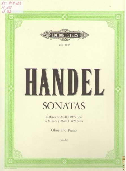 Sonatas C moll, HWV 366; G moll, HWV 364a: fur Oboe und Klavier. Herausgegeben von W.Stade