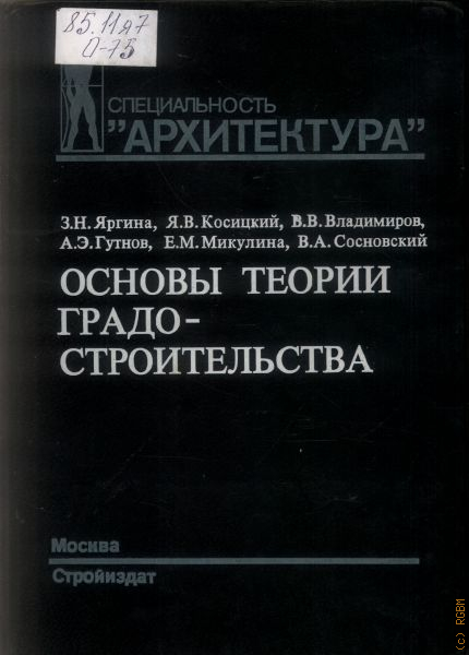 Основы теории градостроительства: [Учебник для архитектурных специальных вузов]. авторы: З. Н. Яргина, Я. В. Косицкий, В. В. Владимиров и др.; Редактор: З. Н. Яргина