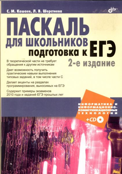 Подробно описаны приемы программирования на Паскале и технология разработки различных алгоритмов программ с акцентом на темы, выносимые на Единый государственный экзамен по информатике и информационно-коммуникационным технологиям. Рассматриваются: описание языка Паскаль, конструкции алгоритмов и блок-схемы, одномерные и двумерные массивы, строки и записи, файлы, численное интегрирование и анализ функций, подпрограммы и функции, работа с данными. По каждому разделу приводится теоретическая информация и типовые задания с подробными пояснениями. По темам, выносимым на ЕГЭ прошлых лет, в том числе прошедшего 2010 года, что отличает второе издание, в соответствующих главах приводятся примеры заданий этих ЕГЭ. Прилагаемый диск (CD-ROM) содержит рассматриваемые в книге программы. Книга может использоваться как при подготовке к ЕГЭ, так и в текущем учебном процессе учащимися и учителями школ и колледжей, а также для самостоятельного изучения языка программирования Паскаль.
