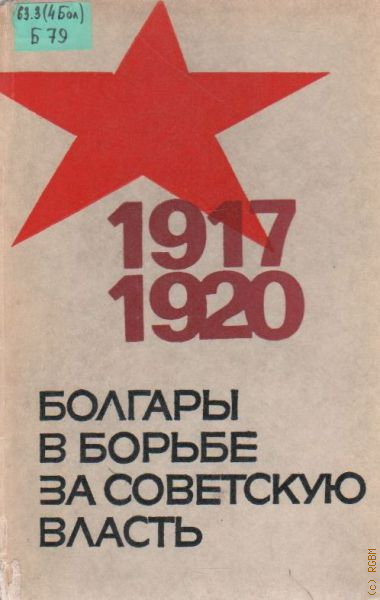 Участие болгар в Октябрьской революции, в укреплении Советской власти (1917−1918гг).Болгарские интернационалисты плечом к плечу с большевиками в борьбе с белогвадейцами и интервентами. Гражданская война (1918−1919 гг).Деятельность болгар в защиту Советской власти на решающем этапе гражданской войны (1919−1920 гг).