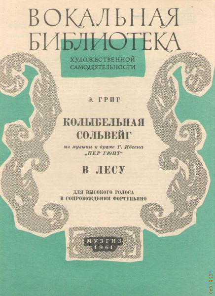 Колыбельная Сольвейг / Пер. А. Ефременкова; В лесу / Сл. Х. Андерсена, пер. С. Гинзберг. В изд. также вступ. статья: Эдвард Хагеруп Григ / В. Подольская: с. 2