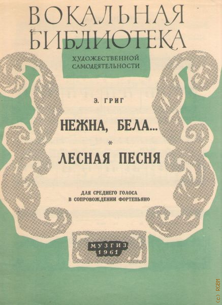 Нежна, бела.../ Рус. текст А. Ефременкова; Лесная песнь: Соч.10 —2 / Сл. Ш. Винтера, пер. А. Ефременкова. В изд. также: вариант перевода "Лесной песни" С. Гинзберг: с. 5
