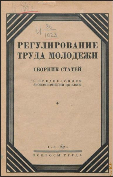 Сборник статей, посвященных различным аспектам регулирования труда молодежи, включая методы вовлечения молодежи в фабрично-заводскую промышленность.
