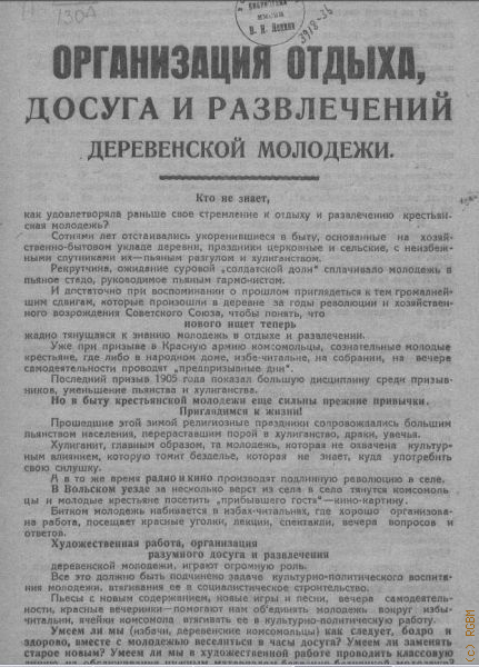 Методические указания комсомольцу-активисту, организующему культурный досуг деревенской молодежи.
