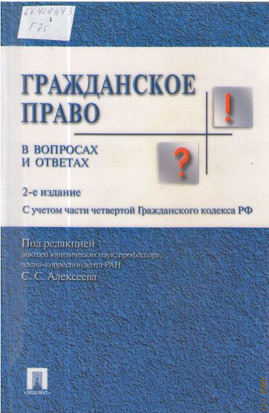 Учебное пособие соответствует программе учебной дисциплины «Гражданское право», в котором последовательно изложен курс гражданского права в форме кратких ответов, в доступной форме раскрывающих основные теоретические вопросы, разбираемые на семинарских занятиях, включаемые в билеты для зачетов и экзаменов в соответствии с государственными стандартами. Пособие подготовлено известными специалистами в области гражданского права на основе действующего законодательства, включая часть четвертую Гражданского кодекса РФ. Для студентов, аспирантов и преподавателей юридических факультетов вузов.