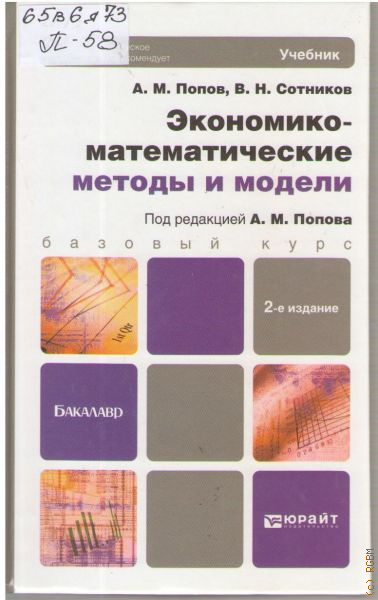 Данный учебник является частью обучающего комплекса, в который также входят книги А. М. Попова и В. Н. Сотникова «Высшая математика для экономистов» и «Теория вероятностей и математическая статистика». Учебник подготовлен в соответствии с Государственным образовательным стандартом высшего профессионального образования по дисциплине «Математика» для экономических специальностей. В нем изложены основные разделы математических методов и моделей в экономике в соответствии с дидактическими блоками Госстандарта. Для студентов и аспирантов экономических направлений и специальностей.