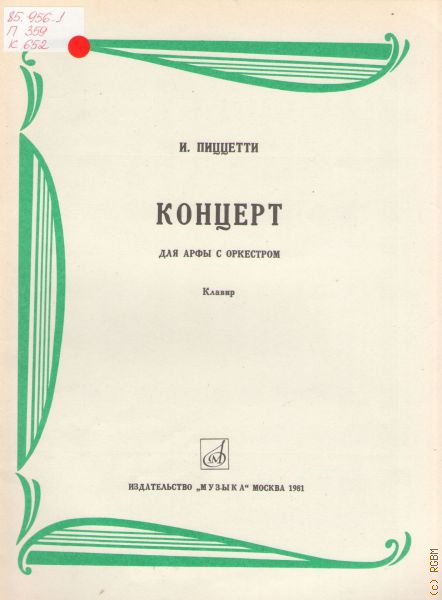 Пиццетти И. Концерт: для арфы с оркестром. Ред. партии арфы Е. Синицына. Клавир