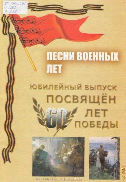 Содерж: Алеша/ Э. Колмановский, сл. К. Ваншенкина. Белоруссия/ А. Пахмутова, сл. Н. Добронравова. Бери шинель, пошли домой/ В. Левашов, сл. Б. Окуджавы. Бухенвальдский набат/ В. Мурадели, сл. А. Соболева. Были два друга/ С. Германов, сл. В. Гусева. В землянке/ К. Листов, сл. А. Суркова. В лесу прифронтовом; Враги сожгли родную хату/ М. Блантер, сл. М. Исаковского. В путь-дорожку дальнюю/ М. Блантер, сл. С. Острового. Где же вы теперь, друзья-однополчане?; Потому что мы пилоты; Соловьи/ В. Соловьев-Седой. сл. А. Фатьянова. Давай закурим/ М. Табачников, сл. И. Френкеля. День Победы/ Д. Тухманов, сл. В. Харитонова. Дороги/ А. Новиков, сл. Л. Ошанина. Жди меня/ М. Блантер, сл. К. Симонова. Журавли/ Я. Френкель, сл. Р. Гамзатова. Моя Москва/ И. Дунаевский, сл. М. Лисянского. На безымянной высоте/ В. Баснер, сл. М. Матусовского. На поле танки грохотали/ Муз. и сл. народные. Нам нужна одна победа/ Муз. и сл. Б. Окуджавы. Огонек/ Муз. народная, сл. М. Исаковского.Ой, туманы мои/ В. Захаров, сл. М. Исаковского. Песня артиллеристов/ Т. Хренников, сл. В. Гусева. Песня защитников Москвы/ Б. Мокроусов, сл. А. Суркова. Пора в путь-дорогу/ В. Соловьев-Седой, сл. С. Фогельсона. Последний бой/ М. Ножкин, Д. Ашкенази; сл. М. Ножкина. Прощайте, скалистые горы/ Е. Жарковский, сл. Н. Букина. Священная война/ А. Александров, сл. В. Лебедева-Кумача. Синий платочек/ Е. Петерсбургский, сл. Я. Галицкого и М. Максимова. Смуглянка/ А. Новиков, сл. Я. Шведова. Шумел сурово брянский лес/ С. Кац, сл. А. Софронова. Темная ночь/ Н. Богословский, сл. В. Агатова. У деревни Крюково/ М. Фрадкин, сл. С. Острового. Хотят ли русские войны/ Э. Колмановский, сл. Е. Евтушенко