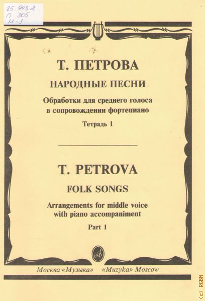 Над озером верба..., Земляниченька спела, зрела, Ах, что ж ты, мой сизой голубчик, У ворот девка стоит, В саду вишневом: русские нар. песни. Аj де моме, аj де душо: македонская нар. песня. Завилися стежки...: польская нар. песня. Слезы утри: польская сказочка. Пастушка: норвежская нар. песня