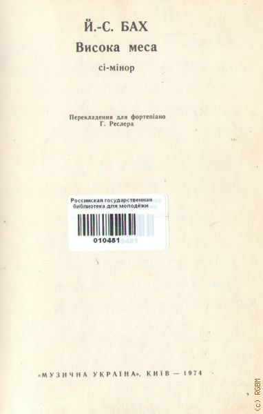 Высокая месса Си минор: переложение для фортепиано Г. Реслера