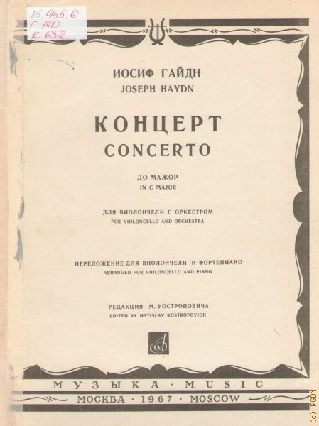 Гайдн Й. Концерт До мажор: для виолончели с оркестром. Перелож. для виолончели и фортепиано. ред. М. Ростроповича