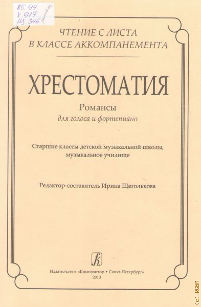 Менуэт; Для того ль я в дни разлуки.../ Г. Теплов, сл. неизвест. авт. К тому ли я тобой пленялась.../ Г. Теплов, стихи А. Сумарокова. Пастушки собралися; Желанья наши совершились; Лети к моей любезной.../ Аноним. Уже со тьмою нощи.../ Ф. Дубянский, стихи В. Капниста. Достигнувши тобою.../ О. Козловский, стихи М. Попова. Вошед в шалаш мой торопливо.../ А. Жилин, стихи Г. Державина. Что с тобой, любезной, стало?/ А. Жилин, стихи И. Дмитриева. Я бедная пастушка/ А. Жилин, стихи неизвест. авт. Ладьею легкой управляя... (пловец) / А. Жилин, сл. В. Жуковского. Пастух и Пастушка / Т. Жуковский, сл. А. Мерзлякова. песня: "Дарует небо человеку... / В. Голицын, ред. В. Шебалина, сл. А. Пушкина. Я помню чудное мгновенье; Не спрашивай, зачем; Дарует небо человеку; Под вечер, осенью ненастной; певец; Буря / Н. Титов, сл. А. Пушкина. Элегия; если жизнь тебя обманет; Увы, зачем она блистает; Я вас любил; Я пережил свои желанья...; Что в имени тебе моем?; саша. я страдаю / А. Алябьев, сл. А. Пушкина. Я вижу образ твой / А. Алябьев, сл. А. Бистрома (из Гете). Кольцо души-девицы; Цветок (Минувшая краса полей); Воспоминание / А. Алябьев, сл. В. Жуковского. Ясны очи, черны очи / А. Алябьев, сл. Д. Ознобишина. Сарафанчик / А. Алябьев, сл. А. Полежаева. К ней (Я помню вечер незабвенный...) / А. Алябьев, сл. Н. Панина. Боюсь, боюсь! / А. Алябьев, сл. Е. Ростопчиной. Люблю тебя! / А. Алябьев, ред. И. Иордан. Вечерком румяну зорю... / А. Алябьев, сл. Н. николаева. Скажите мне, зачем пылают розы... / А. Алябьев, сл. А. Марлинского. К живописцу / Н. Корсаков, сл. А. Пушкина. Слеза / М. Яковлев, сл. А. Пушкина. Под вечер, осенью ненастной / Н. Девитте, сл. А. Пушкина. О, верь моей любви / В. Соколов, сл. М. Лермонтова. Не горюй, не тоскуй / О, Дютш, сл. А. Кольцова. Как цвет, ты чиста и прекпасна / А. Варласов, сл. Г. Гейне, пер. А. Фета. Белеет парус одинокий; Ангел; Скажи мне, отчего... / А. Варламов, сл. М. Лермонтова. На заре ты ее не буди... / А. Варламов, сл. А. Фета. Ты не пой, душа-девица... / А. Варламов, сл. В. Домонтовича. Поэт / А. Варламов, сл. И. Бачманова. Предчувствие "Не судите, люди добрые..."; Челнок / А. Варламов, сл. А. Тимофеева. Что это за сердце? / А. Варламов, сл. Н. Цыганова. Цветок / А. Варламов, сл. В. Жуковского. Ожидание / А. Варламов, сл. С. Стромилова. Молодая пташечка / А. варламов, сл. И. Мятлева. Взволнуют море непогоды / А. Варламов, сл. В. Свечина. Я помню робкое желанье (романс) / А. Гурилев, сл. Н. Огарева. Отгадай, моя родная... / А. Гурилев, сл. В. Крузе. Домик-крошечка / А. Гурилев, сл. С. Любецкого. Право, маменьке скажу / А. Гурилев, сл. Г. Берга. Грусть девушки / А. Гурилев, сл. А. Кольцова. Зачем меня терзаешь ты? / А. Гурилев, сл. Н. Горсткина. О. молчи, милый друг... / А. гурилев, сл. В.П.Г. Улетела пташка / А. Гурилев, сл. С. Сельского. После битвы / А. Гурилев, сл. Н. Щербины. Склонясь задумчиво, уныло... / А. Гурилев, сл. Н. Кожухова. Сердце-игрушка / А. Гурилев, сл. Э. Губера. Внутренняя музыка / А. Гурилев, сл. Н. Огарева. С тоской на радость я гляжу / А. Гурилев, сл. Е. Баратынского. Я говорил при расставанье / А. Гурилев, сл. А. Фета, Разлука (На заре туманной юности...) / А. Гурилев, сл. А. Кольцова