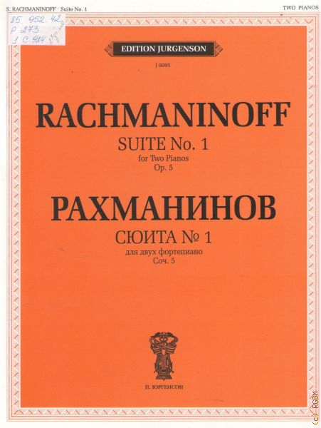 Сюита — 1: первое сочинение Рахманинова для фортепианного дуэта — была написана в 1893 году, посвящена П. Чайковскому. первоначально произведение имело название Фантазия и подзаголовок Картины. Состоит из 4-х частей: «Баркарола», «И ночь, и любовь», «Слезы», «Светлый праздник». Каждой из частей предпосланы эпиграфы из стихотворений М. Лермонтова, Дж. Байрона, Ф. Тютчева, А. Хомякова. Предназначается студентам музыкальных училищ и консерваторий, а также концертирующим музыкантам.
