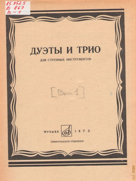 Взвейся выше, понесися, сизокрылый голубочек: Из цикла "Шесть российских песен с вариациями" / И. Хандошкин; Дуэт: Соч. 19 / Д. Виотти; Дуэт: Соч. 9 / Л. Шпор; Дуэт / В. Шер; Дивертисмент: Baryton-trio — 53 / И. Гайдн