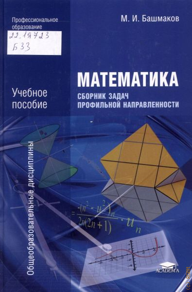 В пособии приведены задачи профильной направленности по математике. Прикладной характер задач обеспечен выбором небольшого числа наиболее значимых профессиональных ситуаций, для которых предлагается строить стандартные математические модели и проводить их исследование в рамках требований Государственного стандарта. В основе выбора моделей лежит анализ стилевых характеристик, свойственных различным приложениям математики. Вместе с учебником «Математика» М. И. Башмакова, учебным пособием «Математика. Задачник» М. И. Башмакова и «Математика. Книга для преподавателя» М. И. Башмакова составляют учебно-методический комплект.