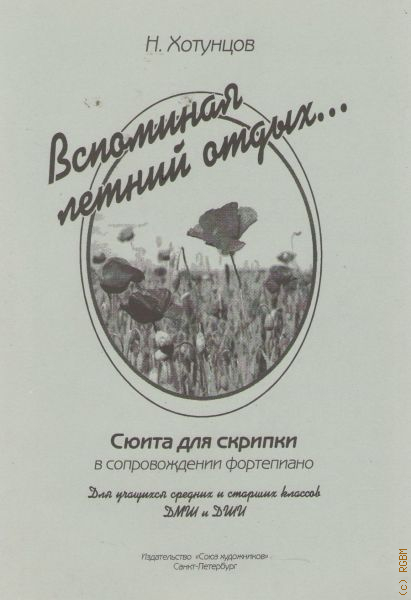 Хотунцов Николай Анатольевич Вспоминая летний отдых...: сюита для скрипки в сопровождении фортепиано: для учащихся средних и старших классов ДМШ и ДШИ