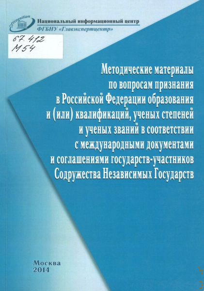 Методические материалы по вопросам признания в Российской Федерации образования и (или) квалификаций, ученых степеней ученых званий в соответствии с международными документами и соглашениями государств -участников Содружества Независимых Государств