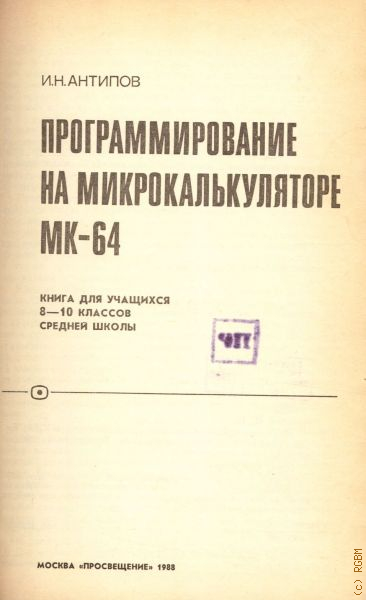 Антипов Игорь Николаевич Программирование на микрокалькуляторе МК-64
