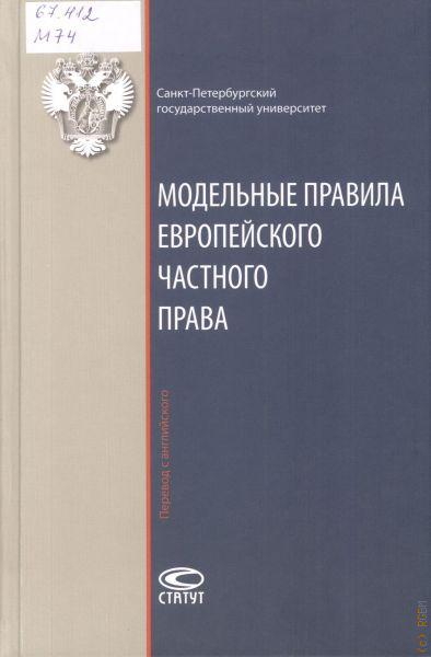 В настоящем издании представлен перевод на русский язык основных частей книги «Принципы, определения и модельные правила европейского частного права. Проект общей справочной схемы (DCFR)», созданной ведущими юристами Европы в рамках проекта Евросоюза по гармонизации европейского частного права. DCFR отражает современный подход к содержанию наиболее востребованных оборотом институтов гражданского права и является самым актуальным источником информации о них. Книга знакомит с высоким уровнем юридической техники, что делает ее важным подспорьем для совершенствования гражданского законодательства. Перевод выполнен квалифицированными специалистами кафедры гражданского права Санкт-Петербургского государственного университета.