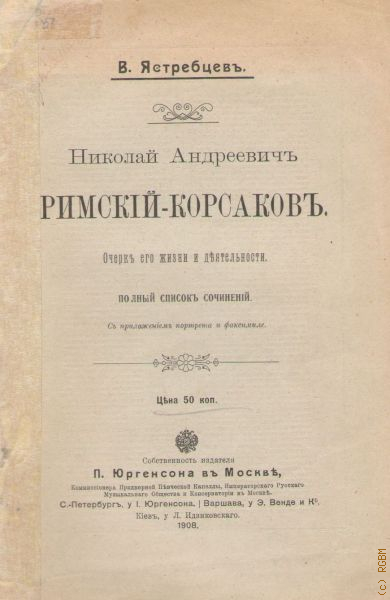 Ястребцев Василий Васильевич Николай Андреевич Римский-Корсаков. Очерк его жизни и деятельности