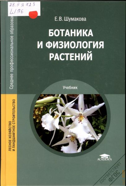 Учебник подготовлен в соответствии с требованиями Федерального го]сударственного образовательного стандарта по специальностям среднего профессионального образования 100 119 ФЛОРИСТИКА и 250 109 САДОВО-ПАРКОВОЕ И ЛАНДШАФТНОЕ СТРОИТЕЛЬСТВО, на основе примерных основных образовательных программ среднего профессионального образования ба]зовой подготовки по общепрофессиональной дисциплине БОТАНИКА И ФИ]ЗИОЛОГИЯ РАСТЕНИЙ. В учебнике рассмотрены основные понятия анатомии, морфологии, физиологии, систематики и географии растений. Приведены биологиче]ские особенности растений различных экологических групп по отноше]нию к свету, воде и другим факторам. Раскрыты основные закономерно]сти протекания физиологических процессов растительного организма. Даны подробные рекомендации и алгоритмы выполнения лабораторно-практических работ. В конце каждой главы приведены вопросы и задания для самоконтроля. Для студентов учреждений среднего профессионального образования.