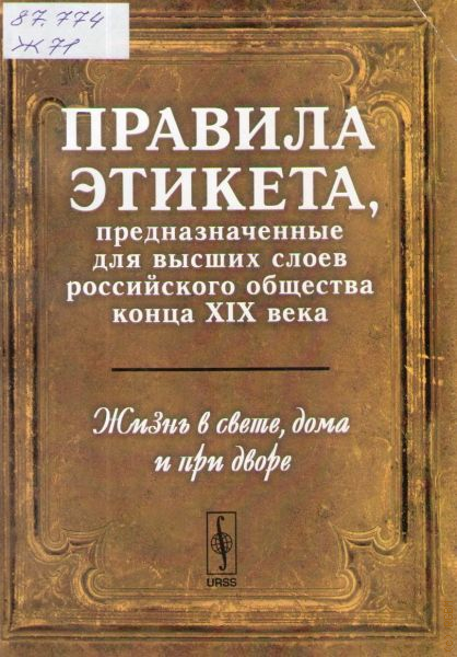 Репринтное издание. Настоящая книга, впервые изданная в 1890 году в Санкт-Петербурге, содержит правила этикета, предназначенные для высших слоев российского общества конца XIX века. Книга состоит из четырех разделов, в которых подробно описаны: поведение светского человека в обществе (от первых выходов в свет до искусства одеваться); устройство домашней жизни (от меблировки помещений до важнейших событий в семье); жизнь вне дома (где описывается, как вести себя в церкви, в театре, в путешествиях и т. д.); жизнь при дворе, содержащая правила и обычаи, нужные при общении с царствующими особами. В заключение даются этикет письма и правила поведения мужчин в обществе. Несмотря на то, что книга обращена к представителям дворянского сословия, содержащиеся в ней правила воспринимаются как образец изящества, изысканности, утонченности, свойственных периоду «серебряного века» русской культуры. Поэтому книга будет интересна как профессиональным историкам и культурологам, так и широкому кругу читателей, желающих ознакомиться с ценностями, нормами и традициями дореволюционной России