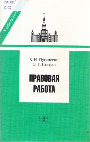 Рассматриваются общие положения о правовой работе и юридической службе, основные задачи юристов коммерческих (предпринимательских) и иных организаций, подробно разбираются способы обеспечения законности в организациях, ведения договорной работы и укрепления договорной дисциплины, применения правовых средств для обеспечения сохранности собственности, улучшения качества товаров, решения других задач. Определенное внимание уделяется способам взаимодействия юридических служб с другими структурными подразделениями организаций при правовой работе, методам управления правовой работы. Для студентов, аспирантов и преподавателей высших юридических учебных заведений. Учебник может быть использован также практикующими юристами коммерческих и иных организаций, предпринимателями, государственными и муниципальными служащими.