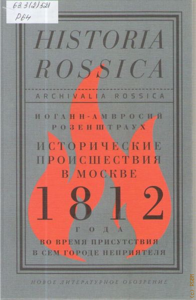 Иоганн-Амвросий Розенштраух (1768−1835) — немецкий иммигрант, владевший модным магазином на Кузнецком мосту, — стал свидетелем оккупации Москвы Наполеоном. Его памятная записка об этих событиях, до сих пор неизвестная историкам, публикуется впервые. Она рассказывает драматическую историю об ужасах войны, жестокостях наполеоновской армии, социальных конфликтах среди русского населения и московском пожаре. Биографический обзор во введении описывает жизненный путь автора в Германии и в России, на протяжении которого он успел побывать актером, купцом, масоном, лютеранским пастором и познакомиться с важными фигурами при российском императорском дворе. И.-А. Розенштраух интересен и как мемуарист эпохи 1812 года, и как колоритная личность, чья жизнь отразила разные грани истории общества и культуры этой эпохи. Публикация открывает собой серию Archivalia Rossica — новый совместный проект Германского исторического института в Москве и издательского дома «Новое литературное обозрение». Профиль серии — издание неопубликованных источников по истории России XVIII — начала XX века из российских и зарубежных архивов, с параллельным текстом на языке оригинала и переводом, а также подробным научным комментарием специалистов. Издания сопровождаются редким визуальным материалом.