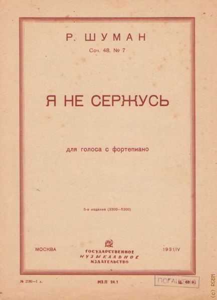 Шуман Роберт Я не сержусь: Соч. 48 — 7: для голоса с фортепьяно