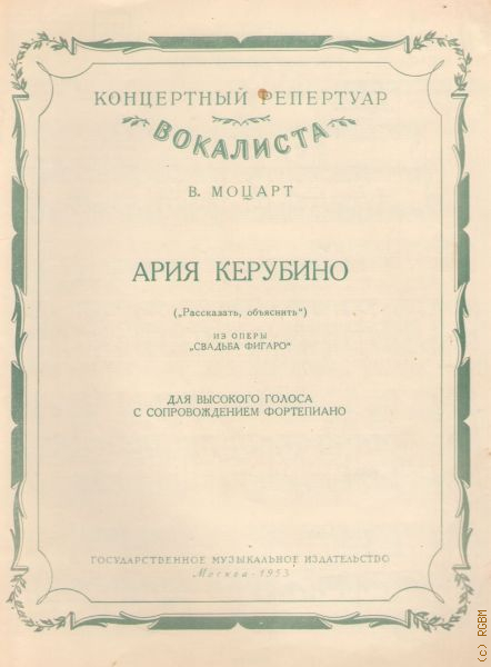 Ария Керубино: ("Рассказать, объяснить"): из оперы "Свадьба Фигаро": для высокого голоса с сопровождением фортепиано