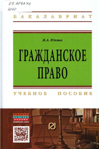Юкша Я. А., Гражданское право. учебное пособие. для студентов высших учебных заведений, обучающихся по направлению подготовки «Юриспруденция» — 2017 (Высшее образование — Бакалавриат) (Бакалавриат)