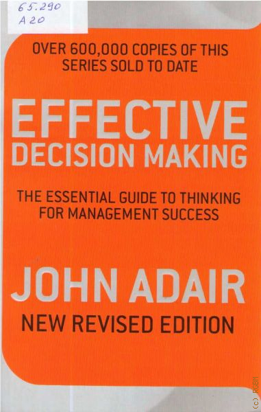 Effective Decision-making" is a guide to the crucial managment skill of creative thinking. John Adair draws on examples and case studies from business, recent history, sport and entertainment to show how to approach problems, how to argue your case and how to develop your thinking skills.
