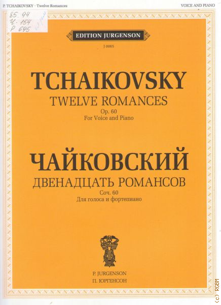 1. Вчерашняя ночь / сл. А. Хомякова; 2. Я тебе ничего не скажу / сл. А. Фета; 3. О, если б знали вы / сл. А. Плещеева (из Ф. Сюлли-Прюдома); 4. Соловей / сл. А. Пушкина; 5. Простые слова / сл. N.N. ( П. Чайковского ); 6. Ночи безумные / сл. А. Апухтина; 7. Песнь цыганки / сл. Я. Полонского; 8. Прости! / сл. Н. Некрасова; 9. Ночь / сл. Я. Полонского; 10. За окном в тени мелькает / сл. Я. Полонского; 11. Подвиг ( Монолог для баритона ) / сл. А. Хомякова; 12. Нам звезды кроткие сияли/ сл. А. Плещеева