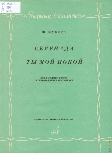 Шуберт Ф. [Произведения] Серенада. Ты мой покой: для высокого голоса в сопровождении фортепиано