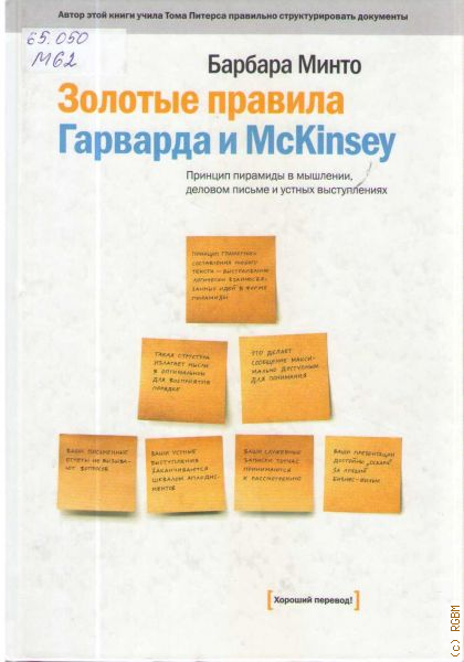 Эта книга учит составлять письменные документы и устные выступления. Согласно теории автора, текст делового документа хорошо воспринимается только в том случае, если его идеи логически взаимосвязаны и выстроены по принципу пирамиды. Только такая структура делает сообщение максимально доступным для понимания, потому что мысли излагаются в порядке, оптимальном для восприятия. Эта теория прошла проверку временем: автор много лет преподает свой курс в крупнейших бизнес-школах, университетах и компаниях Европы и США.