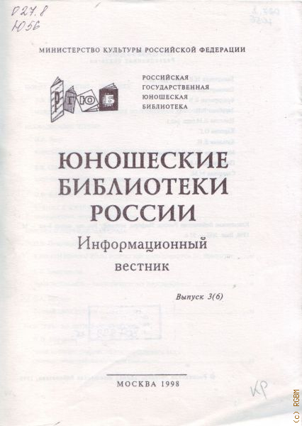Новые технологии - практике: Международная конференция по проблемам информатизации / В.В. Ильина; Исследования чтения: Инновационные формы профориентационной работы / И.А. Лола; Библиотечное чтение учащихся профессиональных училищ / В.В. Суровова; Чтение в жизни старшеклассников: некоторые итоги локального исследования / О.В. Бочарева; Человек и окружающая среда: К итогам второго этапа Всероссийского конкурса по экологии / О.В. Покровская; Тамбовская ОЮБ - экологическому просвещению / Е.В. Замогильная; Познай свои истоки / С.А. Бабенко; Навстречу 200-летию А.С. Пушкина: "Мой Пушкин: говорят поэты серебряного века": материал литературно-художественной композиции / Н.П. Ефремова; Официальные материалы: Правила пользования РГЮБ; Коротко о примечательном: Библиотечное дело на пороге XXI века / С.И. Забелышинская; Командировка в США / Р.З Панова; Библиотека на ярмарке / Г.М Хивинцева; Справочный отдел: Учет использования видеофильмов; Обращение РГЮБ к коллегам
