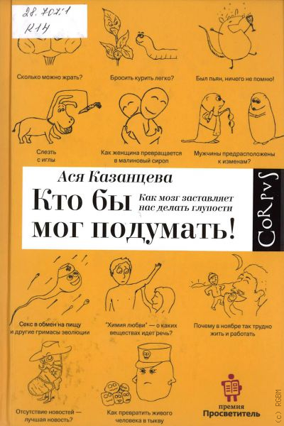 Книга молодого научного журналиста Аси Казанцевой — об —основных биологических ловушках, которые мешают нам жить счастливо и вести себя хорошо—. Опираясь по большей части на авторитетные научные труды и лишь иногда — на личный опыт, автор увлекательно и доступно рассказывает, откуда берутся вредные привычки, почему в ноябре так трудно работать и какие вещества лежат в основе —химии любви—. Выпускница биофака СПбГУ Ася Казанцева — ревностный популяризатор большой науки. Она была одним из создателей программы —Прогресс— на Пятом канале и участником проекта —Наука 2.0— на телеканале Россия; ее статьи и колонки публиковались в самых разных изданиях — от —Троицкого варианта— до Men—s Health. —Как мозг заставляет нас делать глупости— — ее первая книга.