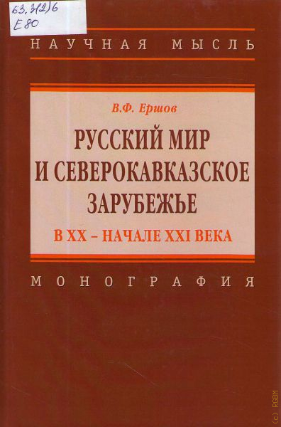 В монографии представлена авторская концепция российского зарубежья как глобальной институциональной системы ХХ — начала XXI века, анализируется процесс становления современного Русского мира и его участие в международном диалоге культур и цивилизаций. Книга впервые освещает тему северокавказского зарубежья в контексте истории и современности Русского мира. В судьбах уроженцев Северного Кавказа — участников Белого движения, общественных деятелей и ученых-эмигрантов 1920—1950-х годов раскрывается феномен российско-кавказского культурного диалога в изгнании.