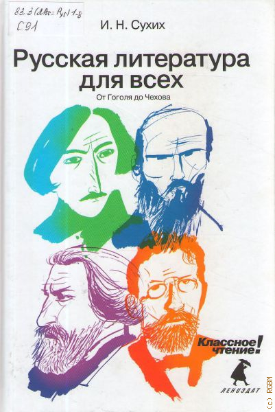 «Русская литература для всех. Классное чтение!» — это увлекательный рассказ об авторах и их произведениях. Это книга для тех, кто хочет ближе познакомиться с феноменом русской литературы, понять, что она значит в нашей жизни, почувствовать, какое влияние она оказывает на каждого из нас, и убедиться в том, что без нее мы были бы совершенно другие. Эту книгу могут читать родители вместе с детьми и дети вместе с родителями, а также каждый по отдельности. Она будет интересна и весьма полезна школьникам, студентам и просто жителям страны, чья литература входит в мировую сокровищницу культуры. Под обложкой этой книги оказались: Н. В. Гоголь, Ф. И. Тютчев, А. А. Фет, И. А. Гончаров, А. Н. Островский, И. С. Тургенев, Ф. М. Достоевский, Л. Н. Толстой, М. Е. Салтыков-Щедрин, Н. А. Некрасов и А. П. Чехов. О них и об их произведениях рассказывает критик, литературовед, автор книг о русской литературе И. Н. Сухих.