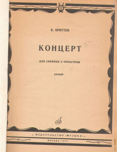 Бриттен Б. Концерт: соч. 15: для скрипки с оркестром. [Клавир и партия] ред. скрипичной партии М. Лубоцкий