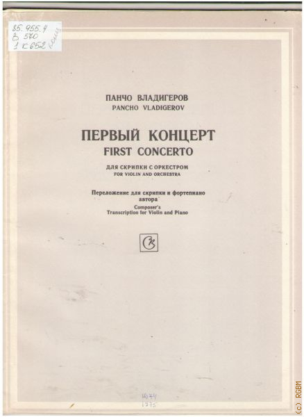 Владигеров Панчо Концерт — 1: Соч. 11: для скрипки с оркестром. Переложение для скрипки и  фортепиано автора