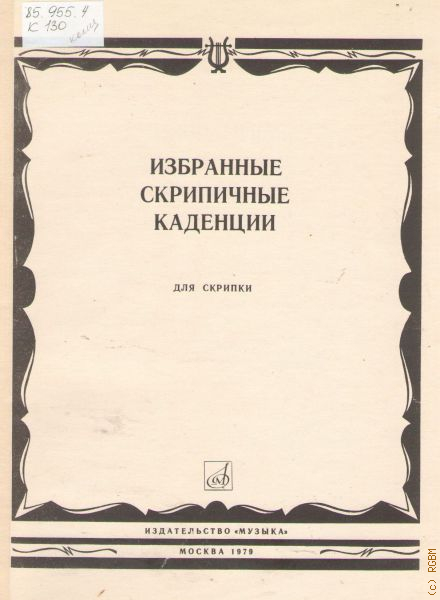 Концерт — 3: Соль мажор В. Моцарт / 5 каденций Э. Изаи, 4 каденции Ф. Крейслер, 4 каденции Д. Ойстрах, Концерт — 4: Ре мажор В. Моцарт / 3 каденции И. Иоахим, 3 каденции Ф. Крейслер, 3 каденции Я. Хейфец. Концерт — 5: Ля мажор В. Моцарта / 6 каденций И. Иоахим, 3 каденции Ф. Крейслер. Концерт — 7: Ре мажор В. Моцарт / 4 каденции Д. Энеску, Концерт: Ре мажор Л. Бетховен / 3 каденции И. Иоахим. 3 каденции Ф. Крейслер. Концерт — 1: Ре мажор Н. Паганини / каденция А. Вильгельми, 3 каденции Ф. Крейслер, каденция 1-я версия и 2-я версия Э. Сорэ. Концерт — 2: Си минор Н. Паганини / каденция А. Ямпольский. Концерт И. Брамс / каденция И. Иоахим, каденция Ф. Крейслер, Я. Хейфец