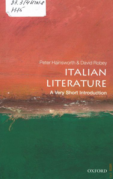 In this Very Short Introduction, Peter Hainsworth and David Robey examine Italian literature from the Middle Ages to the present day. They discuss the works of major figures from Dante to Calvino and a wide range of other authors, bringing out the distinctive qualities and importance of each. The book progresses through a series of defining themes and issues: tradition, theory, politics, secularism, and the position of women, all seen in the context of Italy’s troubled and complex history. The result is a new, informative, and readable perspective on one of the great literatures of Europe.