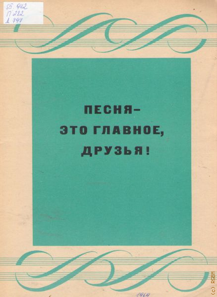 Мужские ансамбли: Песня - это главное, друзья! / Я. Дубравин, сл. С. Фогельсона. Песня молодости / В. Дмитриев, сл. А. Ольгина, перелож. В. Акульшина. Мужской характер / С. Пожлаков, сл. И. Шаферана, обраб. А. Осипова. Дорога к горизонту / В. Шеповалов, сл. Л. Куклина, обраб. В. Акульшина. Женские ансамбли: песня о голубых городах: из кф "Два воскресенья" / А. Петров, сл. Л. Куклина, обраб. Я. Дубравина. Спросите, ребята / А. Колкер, сл. Л. Норкина. Золотая тайга / В. Пушков, сл. А. Прокофьева, обраб. В. Ильина. Звать любовь не надо: из кф "Моя любовь" / И. Дунаевский, сл. А. д'Актиля, обраб. Я. Дубравина. Деревянная Венеция / Ф. Брук, сл. Л. Хаустова. Что было, то было / Г. Пономаренко, сл. М. Агашиной, обраб. В. Акульшина. Дым / дж. Керн, сл. О. Харбаха, рус. текст Т. Сикорской, обраб. В. Акульшина. Кукушечка; Комара муха любила; Как поеду я в дяревню: рус. нар. песня / обраб. М. Леонтовича.