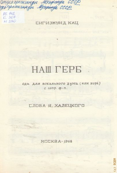 Кац С. Наш герб: ода для вокального дуэта (или хора) с сопровождением фортепиано. слова Я. Халецкий