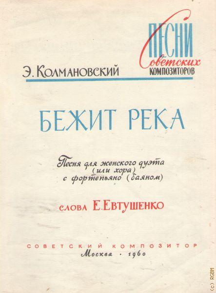 Колмановский Э. Бежит река: песня для женского дуэта (или хора) с фортепиано (баяном) слова Е. Евтушенко